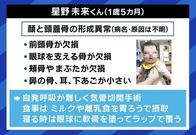 障害を有する星野未来君(1歳)と両親。