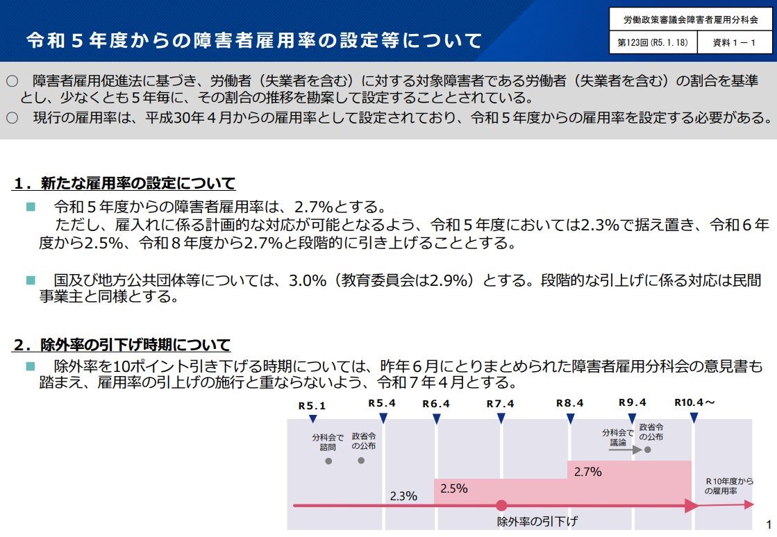 障害者の雇用割合(雇用率)を、現行の2.3%から