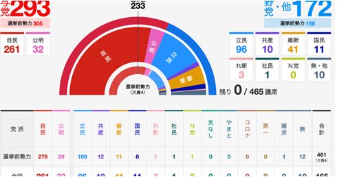 11月1日未明、2021総選挙での議員議席数が確定した。