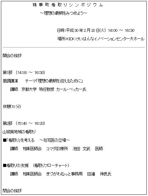 “精華町看取りシンポジウム”を聴講した。