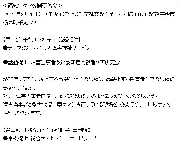 ●テーマ:認知症ケアと障害福祉サービス